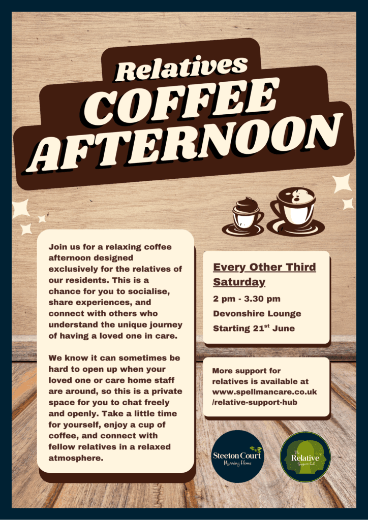 Join us for a relaxing coffee afternoon designed exclusively for the relatives of our residents. This is a chance for you to socialise, share experiences, and connect with others who understand the unique journey of having a loved one in care.